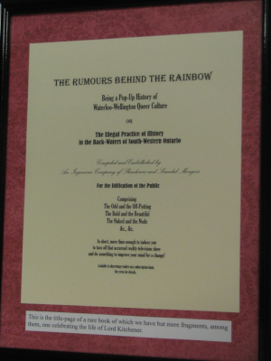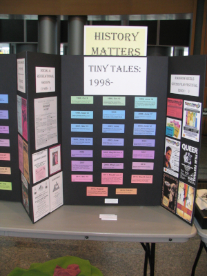 These are some photos from the 2013 tri-Pride Festival - with an emphasis on the involvement of SPECTRUM. It was SPECTRUM's first involvement with tri-Pride. The first nine photos feature a display created especially for tri-Pride 2013 by Jim Parott, using materials from the Grand River Rainbow Historical Project. |