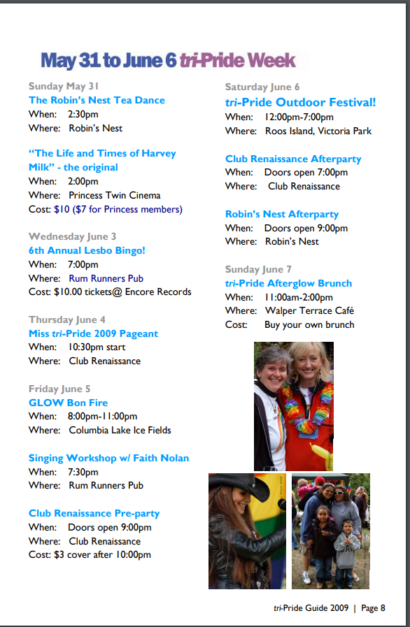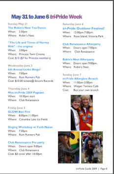 | 2009, June 3 (Wednesday) | This is an announcement that is found on p.8 of the 2009 Pride Guide. | JPEG file [764 K.] |