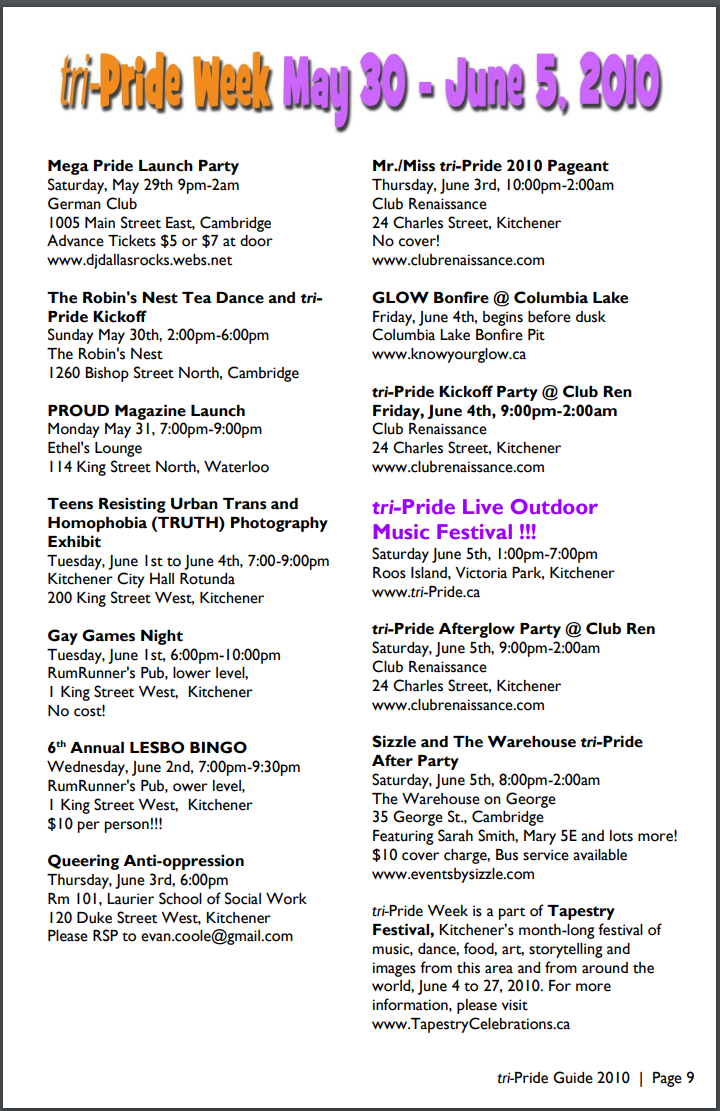 | 2010, June 2 (Wednesday) | This is an announcement that is found on p.9 of the 2010 Pride Guide. | JPEG file [764 K.] |