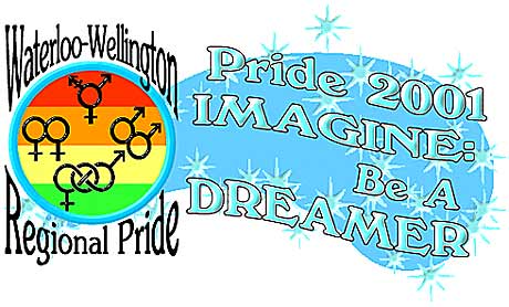 Waterloo-Wellington Regional Pride Presents Pride 2001 12pm - 6pm on Roos Island in Kitchener's Victoria Park.