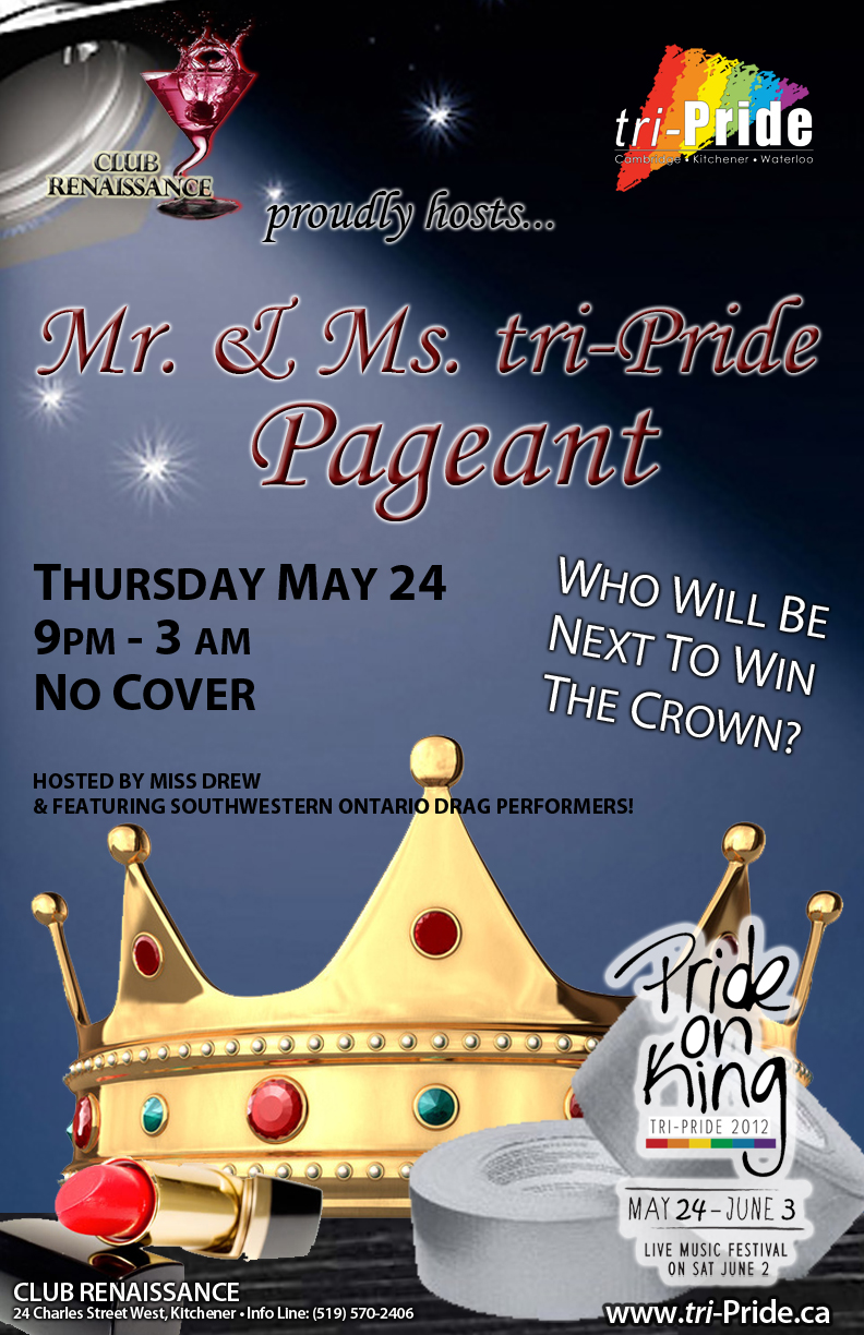 2012, May 24 - Mr. & Ms. tri-Pride Pageant Poster | Original JPEG was supplied from the Ryan Connell Digital Archives. | ![]() JPEG file [6.3 Meg.] |